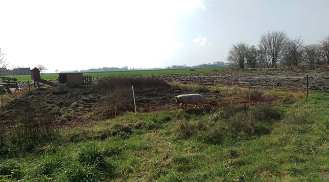 Die kringloop is heel belangrijk. En tijdens de rondleiding in De Eemstuin volgen we in feite die kringloop. Eerst zien we een heel systeem aan composthopen. Mijn dochter was ondertussen aan het roepen naar het varken dat achter de composthopen stond te knorren, dus hoe dit precies zat is mij ontgaan. Maar het mooie van eigen compost is natuurlijk ook dat je precies weet wat erin zit.