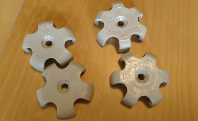 Hier zie je twee zes-hoeks hubs en twee vijf-hoeks hubs