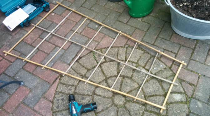 Nou, we hebben de trellis gemaakt, volgens je instructies! Echt een supergoede handleiding! Het was een paar uur werk (gok 5 uur ofzo), maar dan heb je ook wat 🙂 Het plan is er een klimroos (van het type rambler) op te laten groeien volgend voorjaar. We wonen niet ver bij de bamboe import vandaan, dus hebben daar mooie stokken kunnen uitzoeken. Jammer dat ik hier geen plaatje kan uploaden, dan had ik m kunnen laten zien 🙂